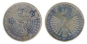 Moneda conmemorativa del Tratado de Roma, acuñación común de todos los países de la zona euro